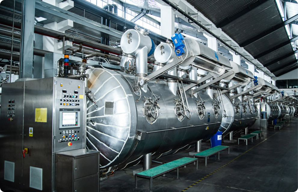 ① Pretreatment: singeing machines, mercerizing machines, desizing, scouring and bleaching